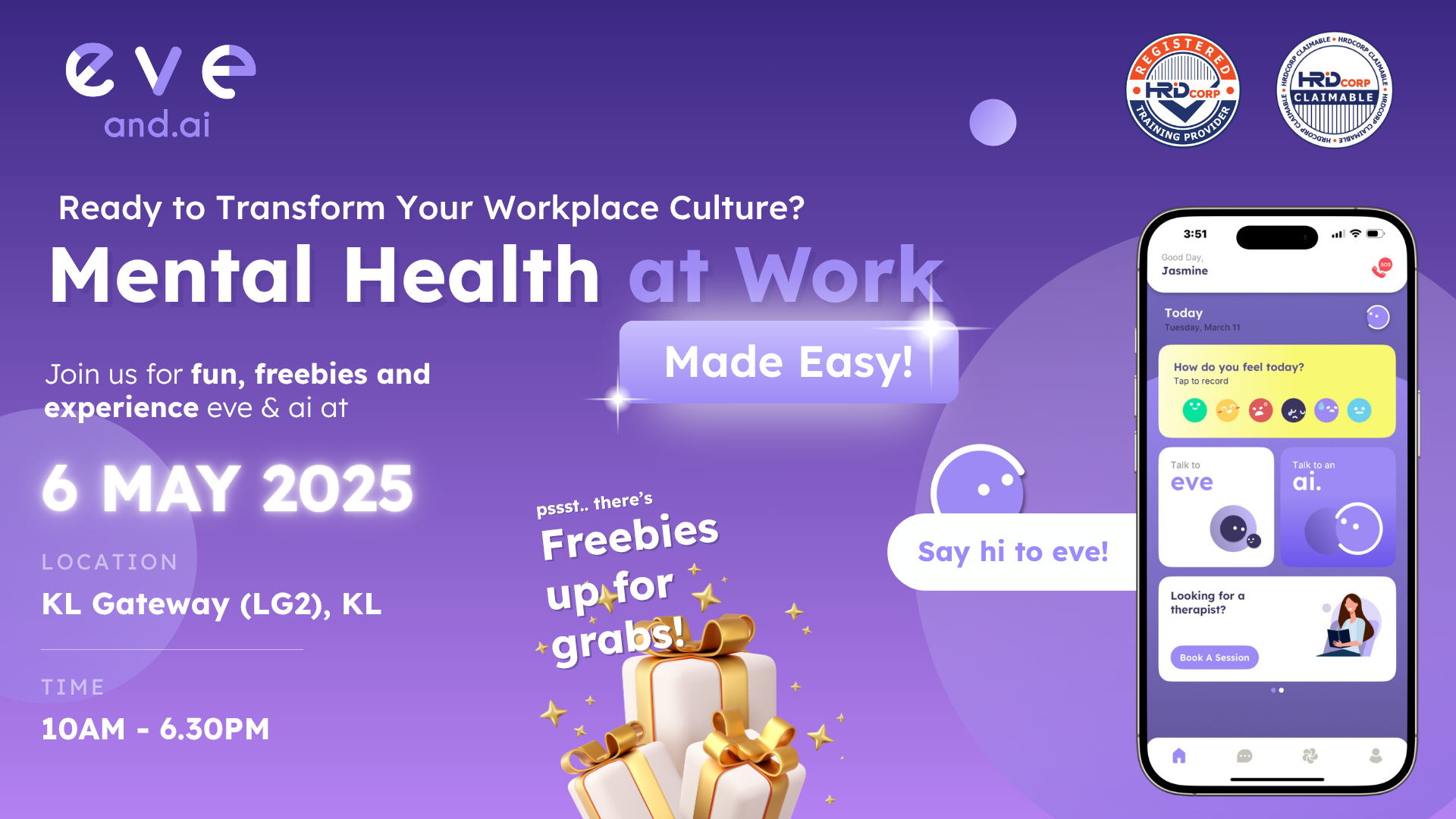 Come meet eve & ai โ€” your emotional wellbeing companion โ€” and experience how weโ€™re making mental health support your workplace more accessible, personalised, and even a little fun! ๐ŸŽฏ๐Ÿง