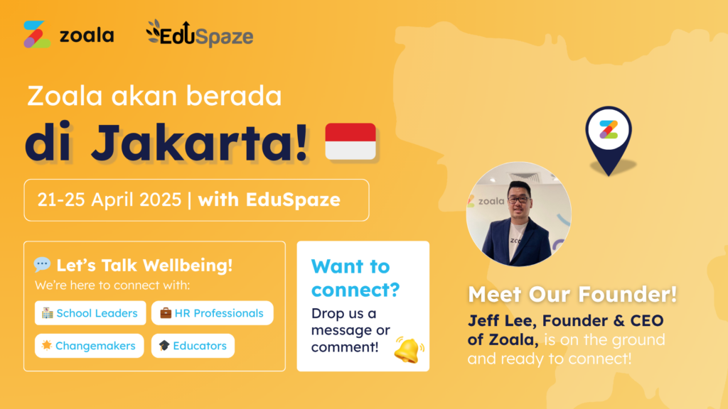 ๐ฎ๐ฉ ๐๐ฒ๐น๐น๐ผ ๐๐ฎ๐ธ๐ฎ๐ฟ๐๐ฎ! Weโll be in town from 21โ25 April 2025 to connect with schools, educators, HR leaders, and organisations passionate about mental wellness. At Zoala and eve & ai, we believe wellbeing drives growthโin classrooms and in the workplace. Letโs build stronger communities together. ๐ Meet our Founder & CEO, Jeff Lee, while heโs […]
